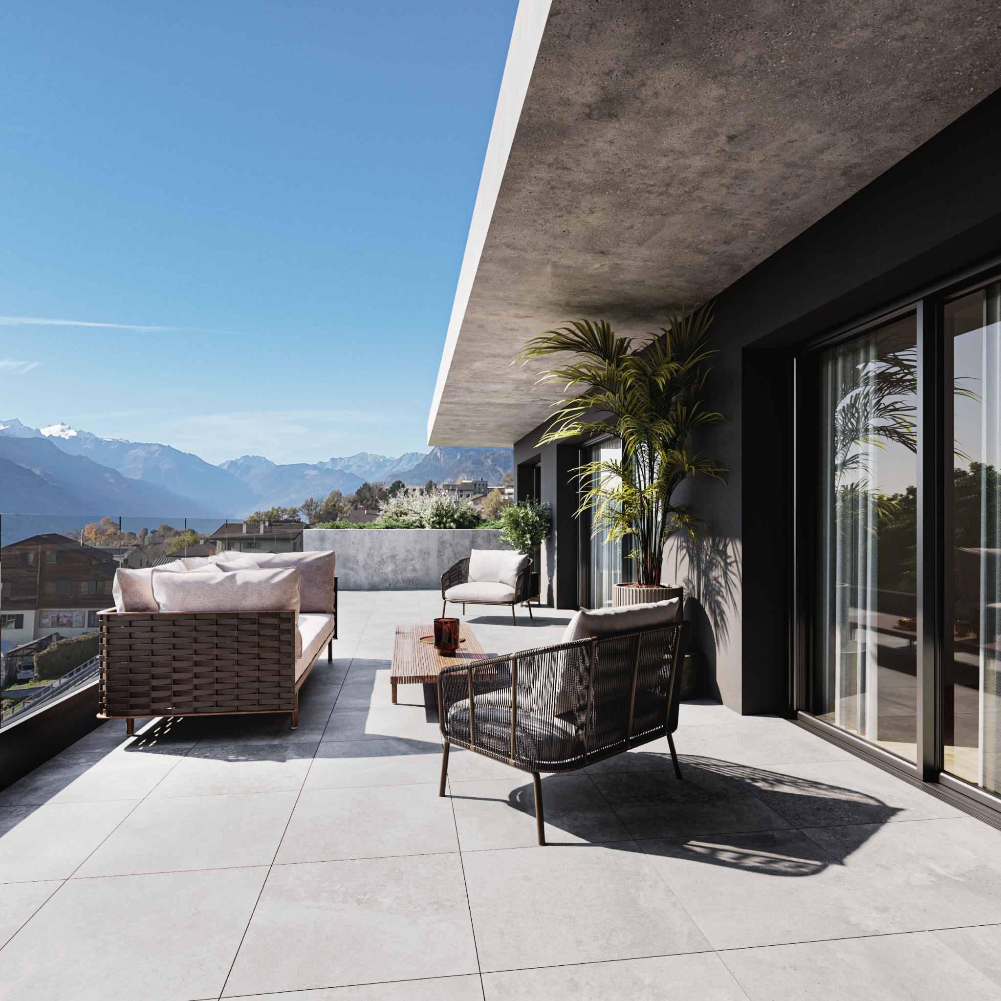 Magnifique appt de 4.5 pièces avec 2 balcons, 1 pl. parc couverte et vue panoramique sur les Alpes