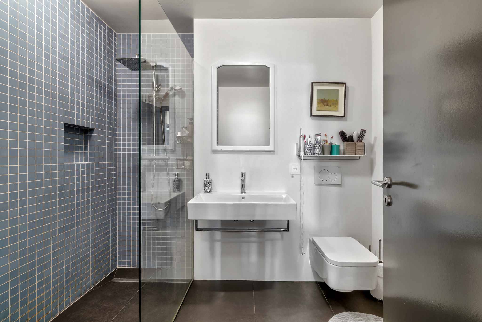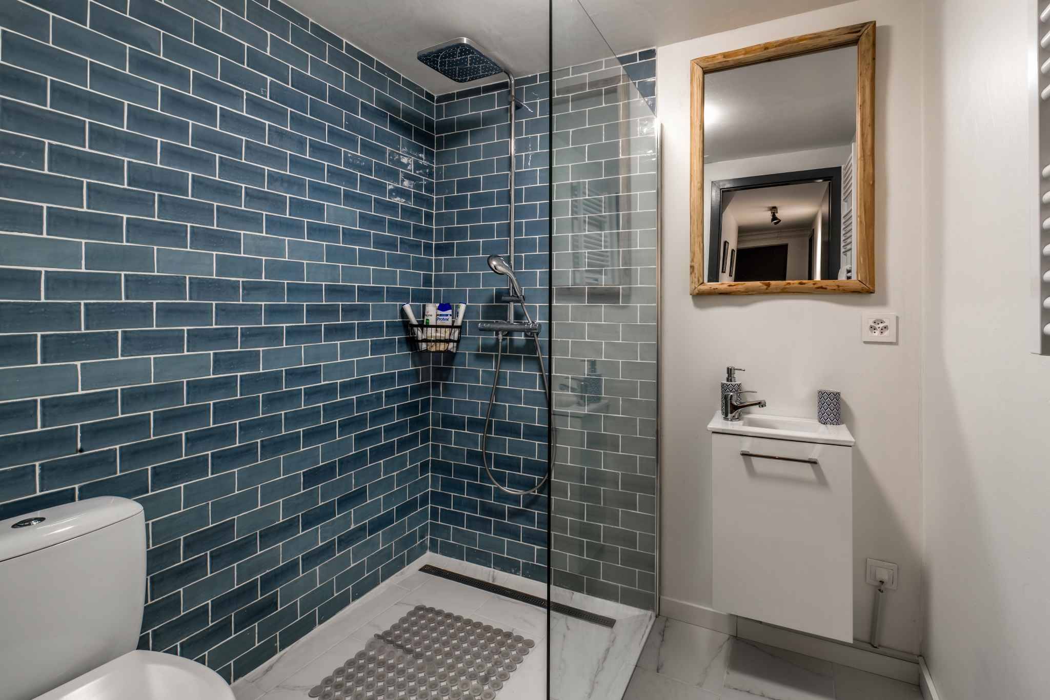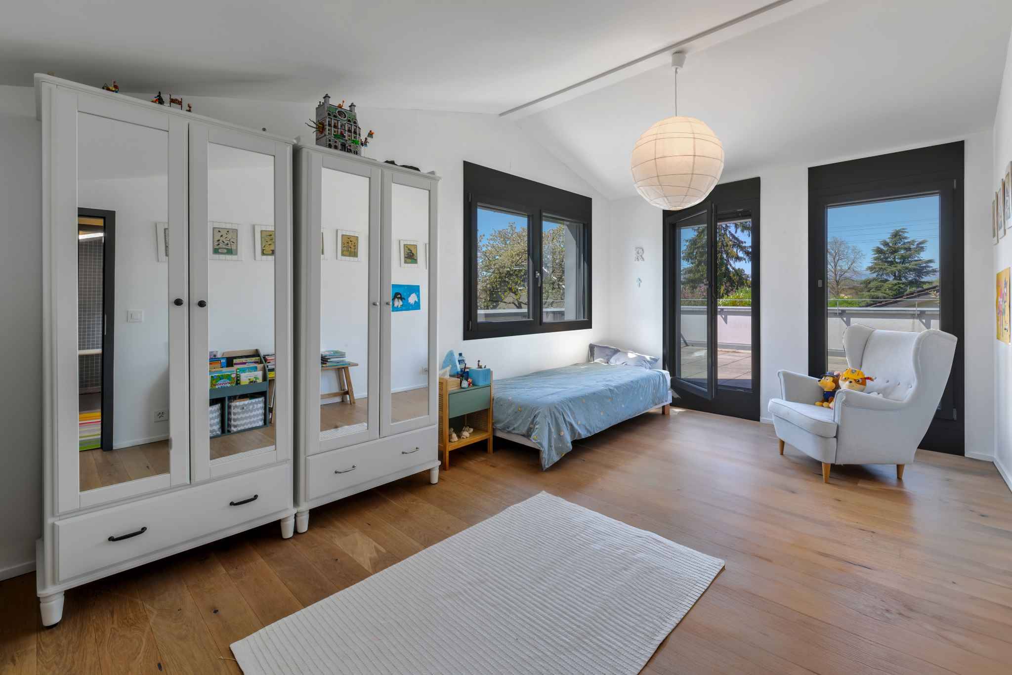 À l’extérieur, un garage double ainsi qu’une borne de recharge pour véhicule électrique complètent ce bien rare.