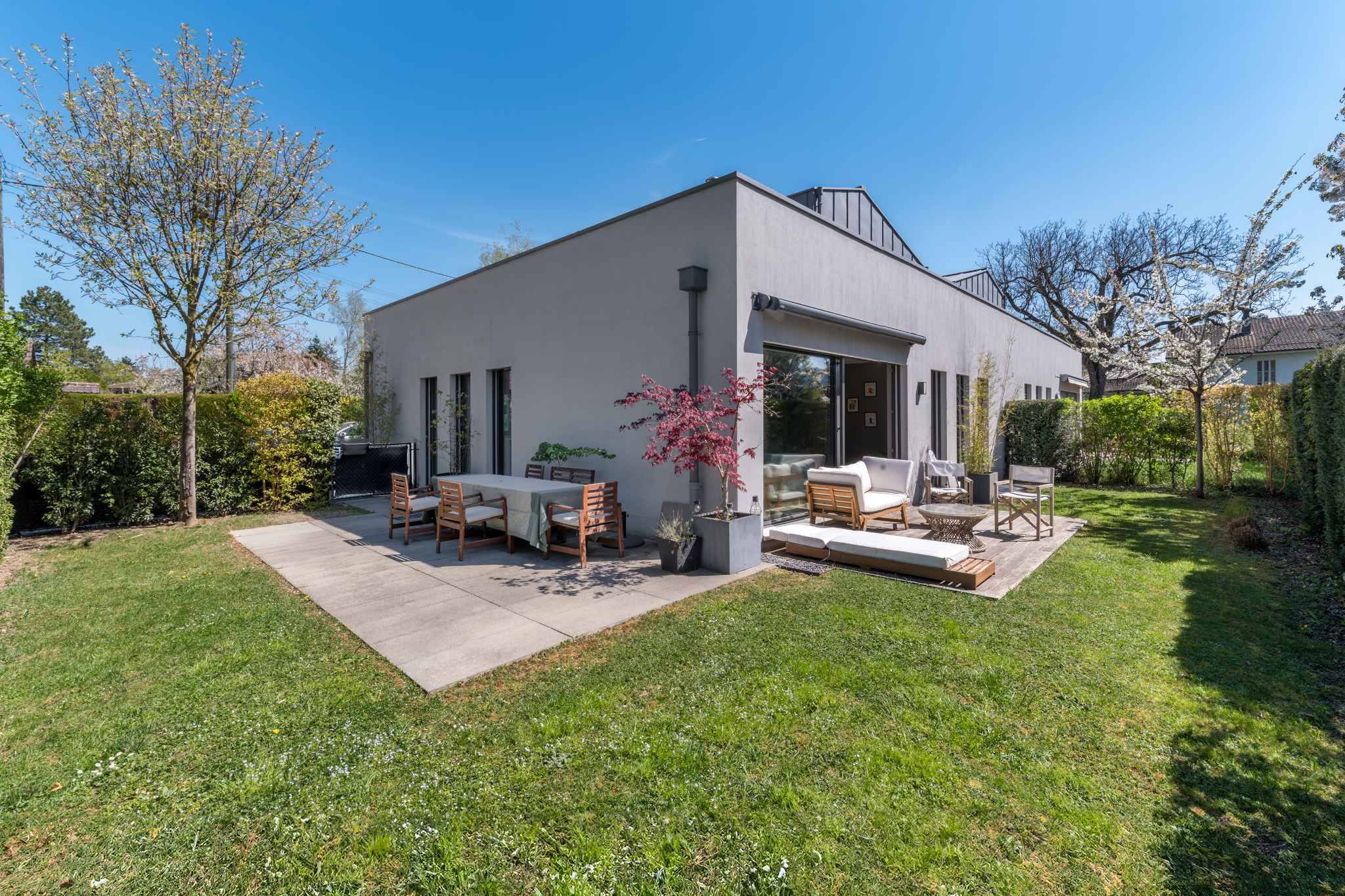Nichée dans un écrin de verdure à l’abri des regards, cette élégante propriété offre un cadre de vie idéal pour une famille.
