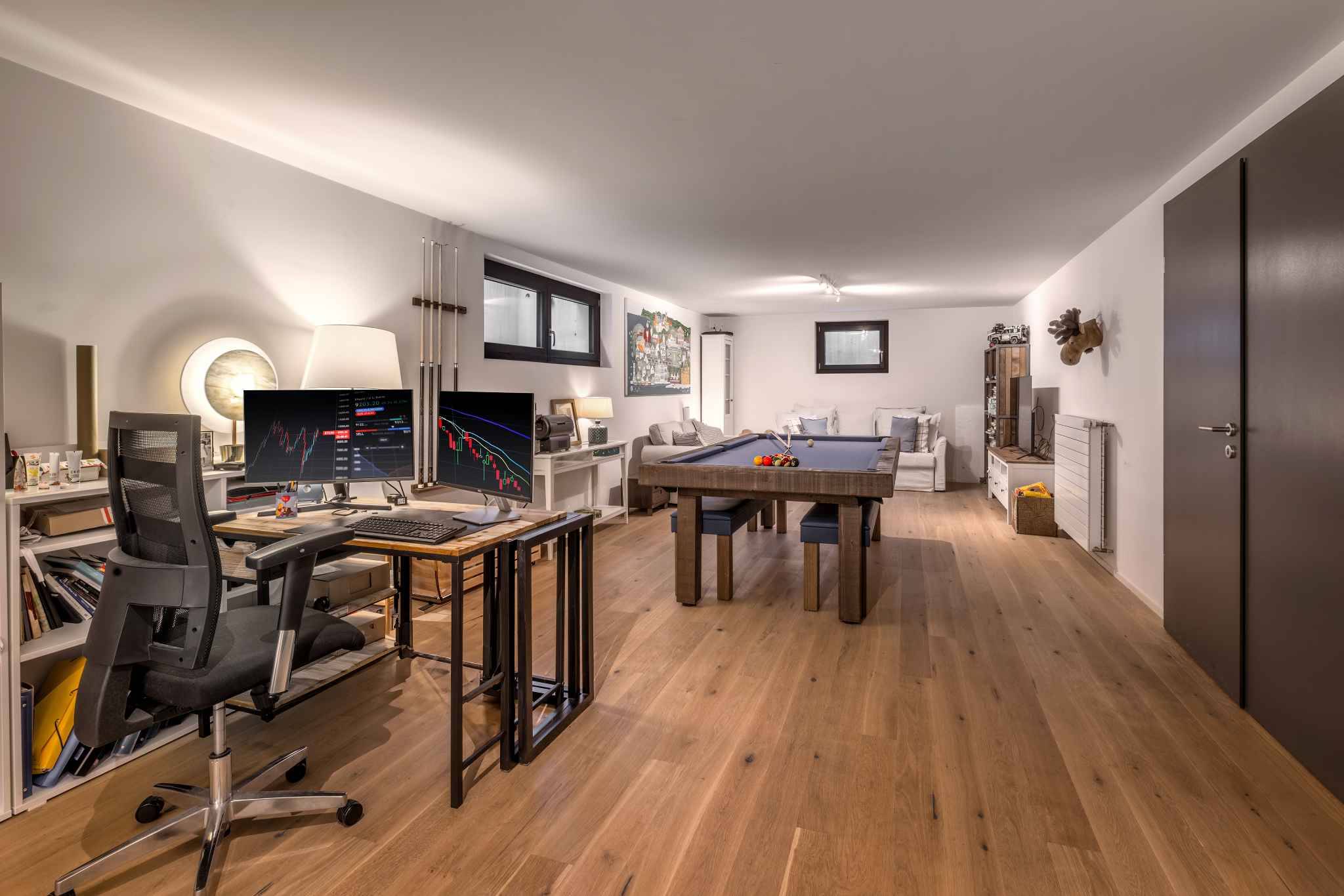 Le sous-sol dispose d’une chambre avec rangements et accès extérieur indépendant, d’une salle polyvalente, d’une buanderie et d’une cave à vin.