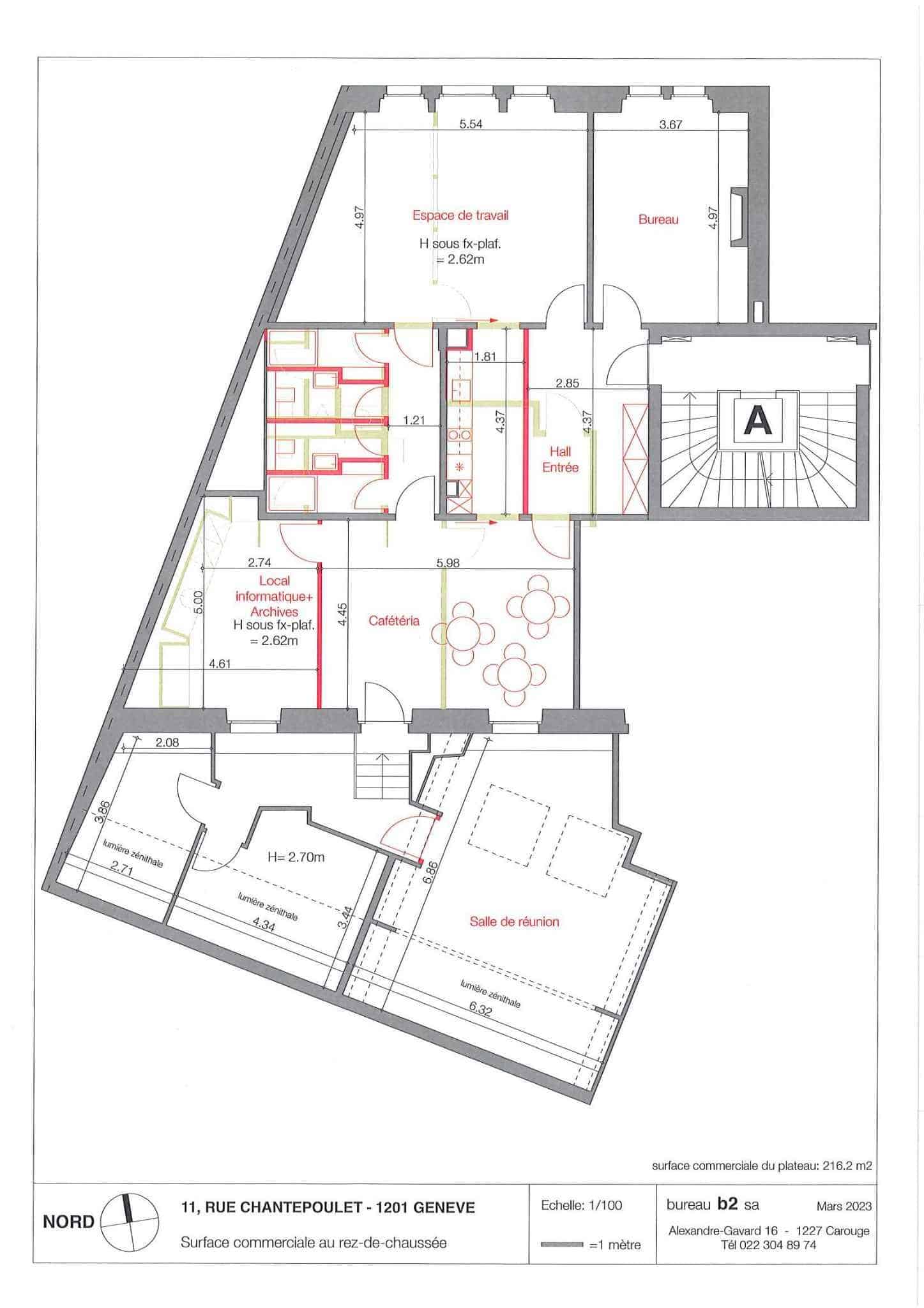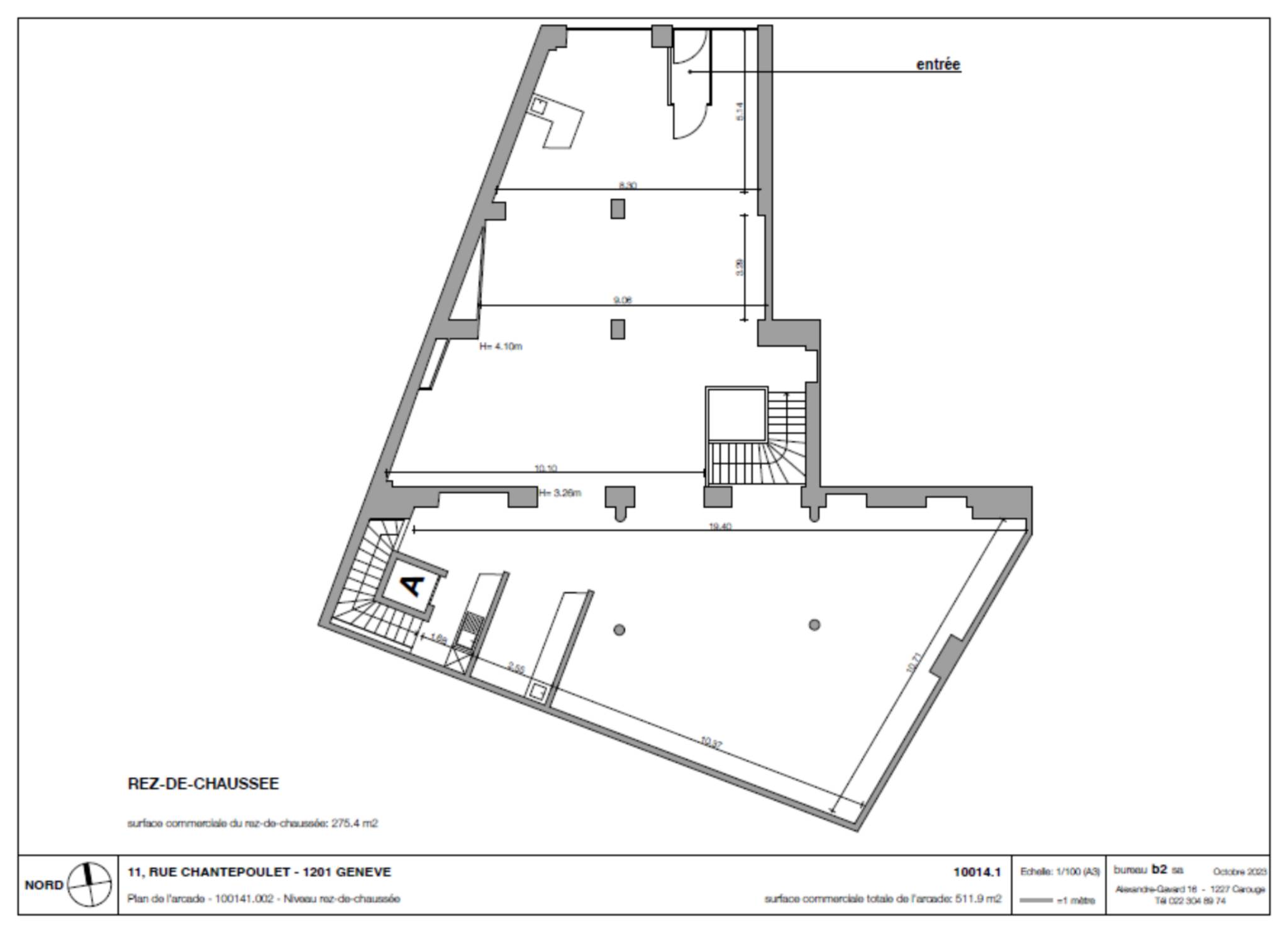 Belle arcade commerciale d'environ 500m2 située dans un immeuble de standing (19ème siècle) proche de la gare et à 5 minutes à pieds du centre névralgique de Genève.